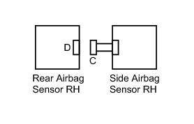 The side airbag sensor RH circuit consists of the center airbag sensor assembly, side airbag sensor RH, door side airbag sensor RH* and rear airbag sensor RH.