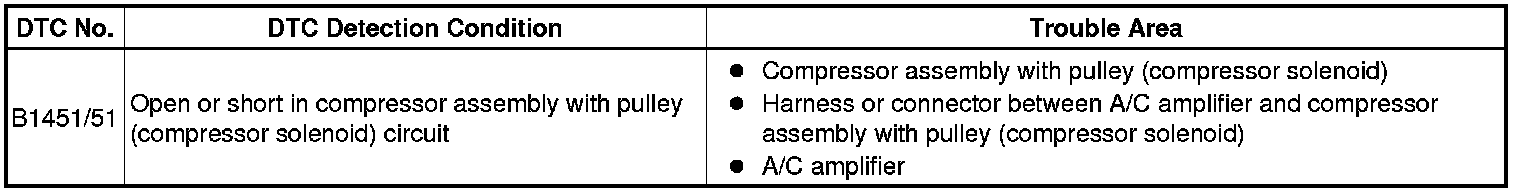 HEATING / AIR CONDITIONING: AIR CONDITIONING SYSTEM (for Automatic Air Conditioning System): B1451/51; Compressor Solenoid Circuit; 2013 MY Corolla [07/2012 -]