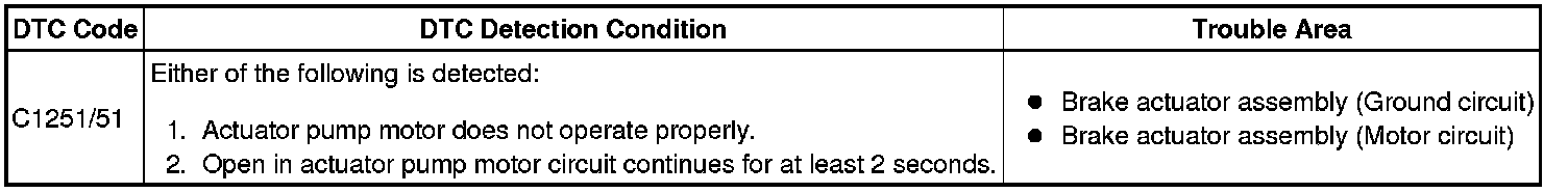 BRAKE CONTROL / DYNAMIC CONTROL SYSTEMS: ANTI-LOCK BRAKE SYSTEM: C1251/51; Open in Pump Motor Circuit; 2013 MY Corolla [07/2012 -]