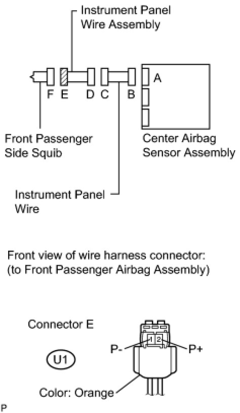 (c) Check that the connectors are properly connected to the front passenger airbag assembly and center airbag sensor assembly. Also check that the connectors that link the instrument panel wire assembly and instrument panel wire are properly connected.