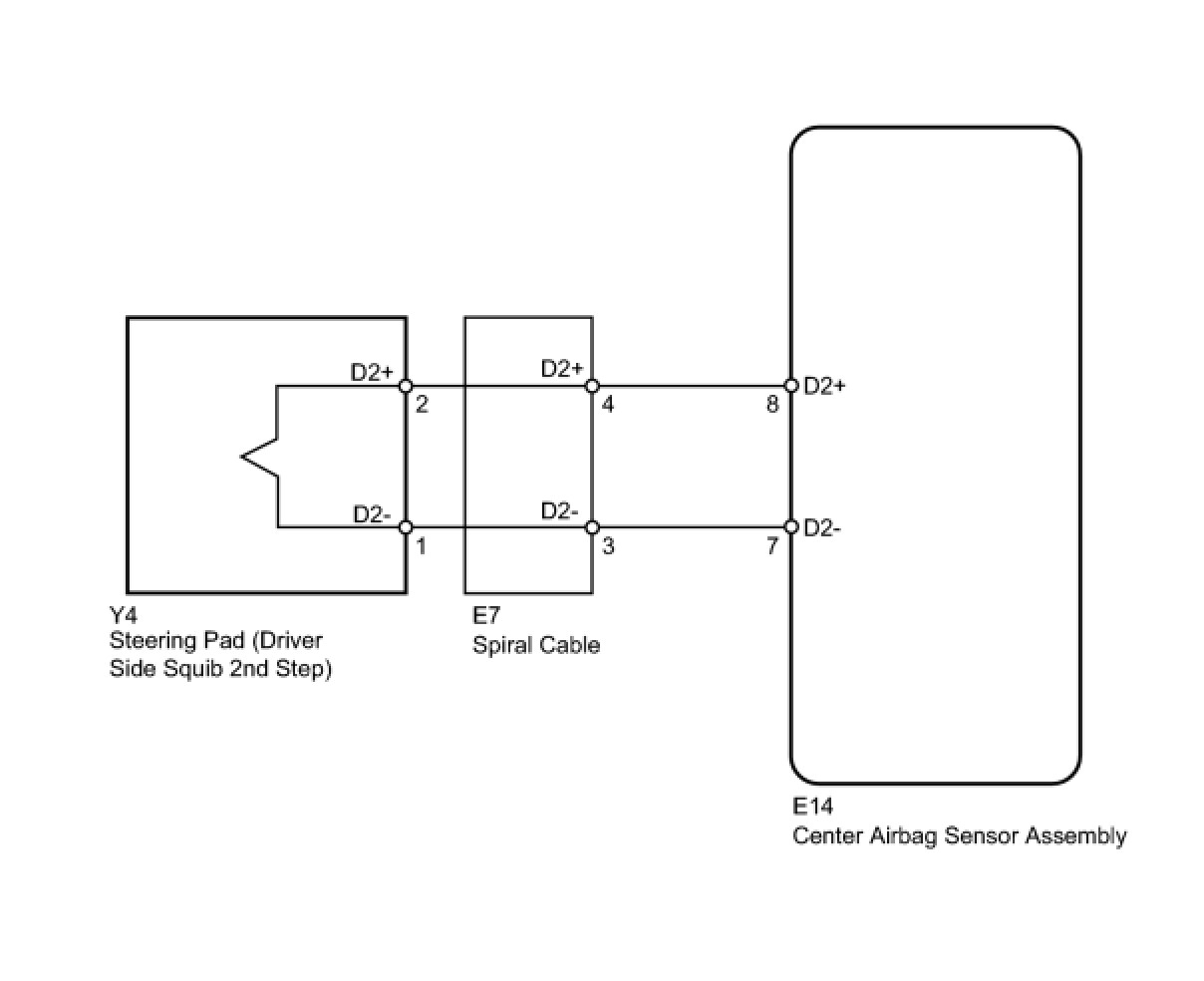 * The driver side squib 2nd step circuit consists of the center airbag sensor assembly, the spiral cable and the steering pad.