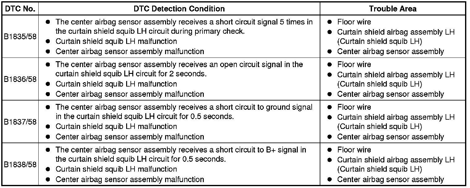 SUPPLEMENTAL RESTRAINT SYSTEMS: AIRBAG SYSTEM: B1835/58-B1838/58; Short in Curtain Shield Squib LH Circuit; 2013 MY Corolla [07/2012 -]