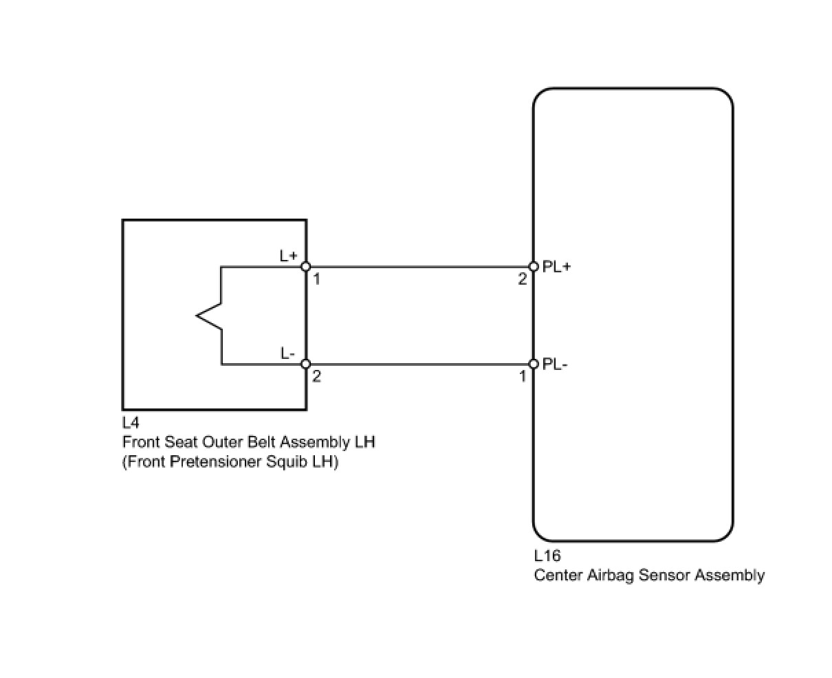 The front pretensioner squib LH circuit consists of the center airbag sensor assembly and the front seat outer belt assembly LH.