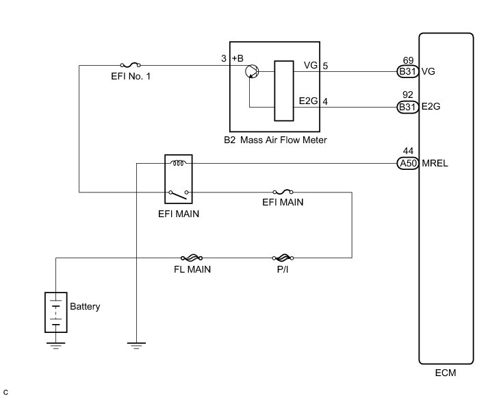 NG -- REPAIR OR REPLACE HARNESS OR CONNECTOR (INTEGRATION RELAY (EFI MAIN RELAY) - MASS AIR FLOW METER)