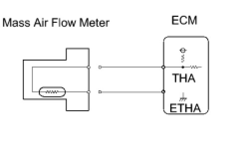 * The intake air temperature sensor is powered by a 5 V supply from the THA terminal of the ECM, via resistor R which is located inside the ECM.