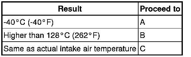 When any of DTCs P0112 and P0113 are set, the ECM enters fail-safe mode. During fail-safe mode, the intake air temperature is estimated to be 20°C (68°F) by the ECM. Fail-safe mode continues until a pass condition is detected.