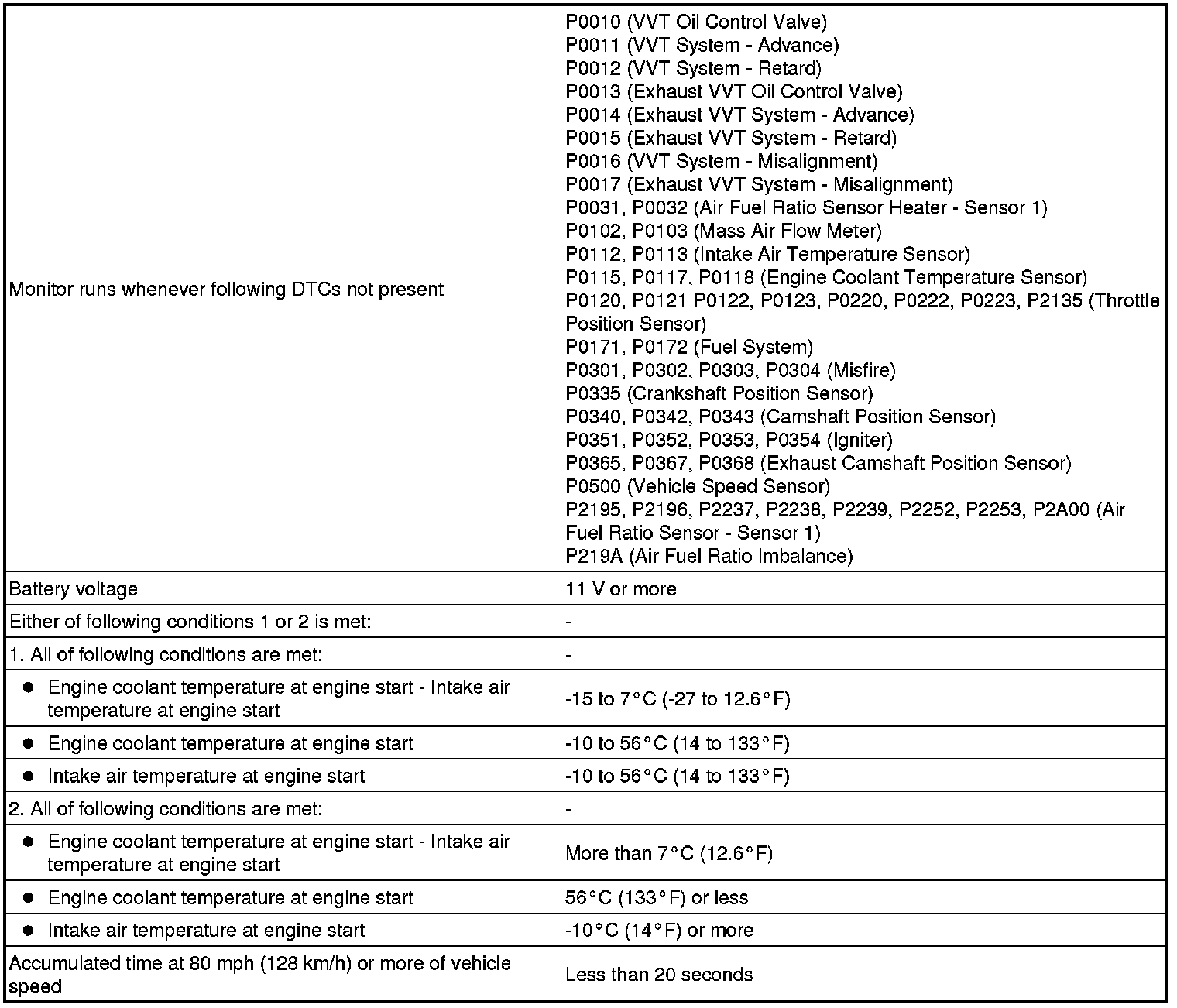 This DTC is set when the engine coolant temperature does not reach 75°C (167°F) despite sufficient engine warm-up time having elapsed.