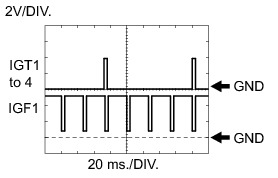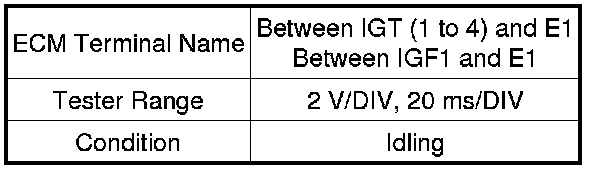 * While idling the engine, check the waveform between terminals IGT (1 to 4) and E1, and IGF1 and E1 of the ECM connector.