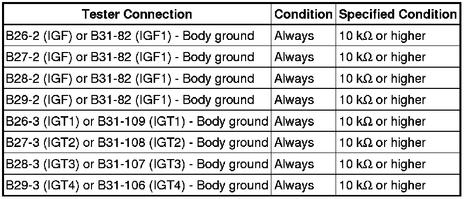 NG -- REPAIR OR REPLACE HARNESS OR CONNECTOR (IGNITION COIL ASSEMBLY - BODY GROUND)