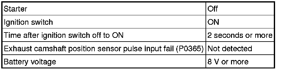 If no signal is transmitted by the exhaust camshaft position sensor despite the engine revolving, or the rotation of the exhaust camshaft and the crankshaft is not synchronized, the ECM interprets this as a malfunction of the sensor.