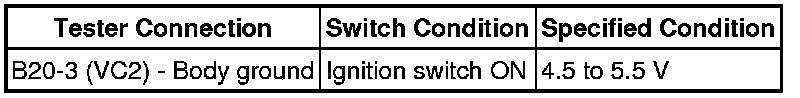 Also, when the sensor output voltage remains at less than 0.3 V, or more than 4.7 V for 4 seconds or more, the ECM stores a DTC.