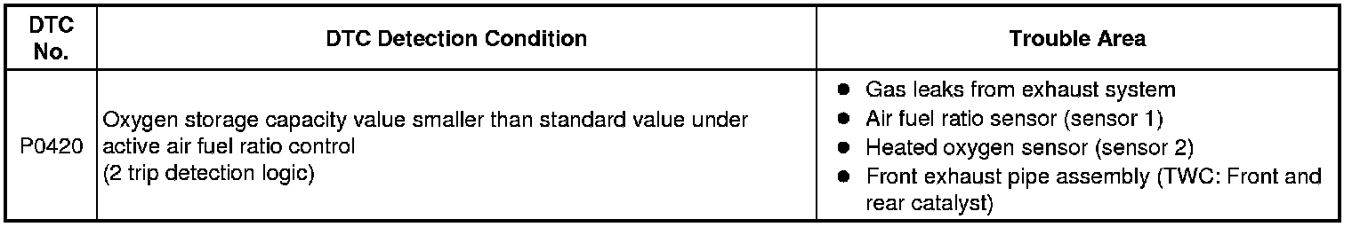 * If a malfunction cannot be found when troubleshooting DTC P0420, a lean or rich abnormality may be the cause. Perform troubleshooting by following the inspection procedure for P0171 (System Too Lean) and P0172 (System Too Rich).