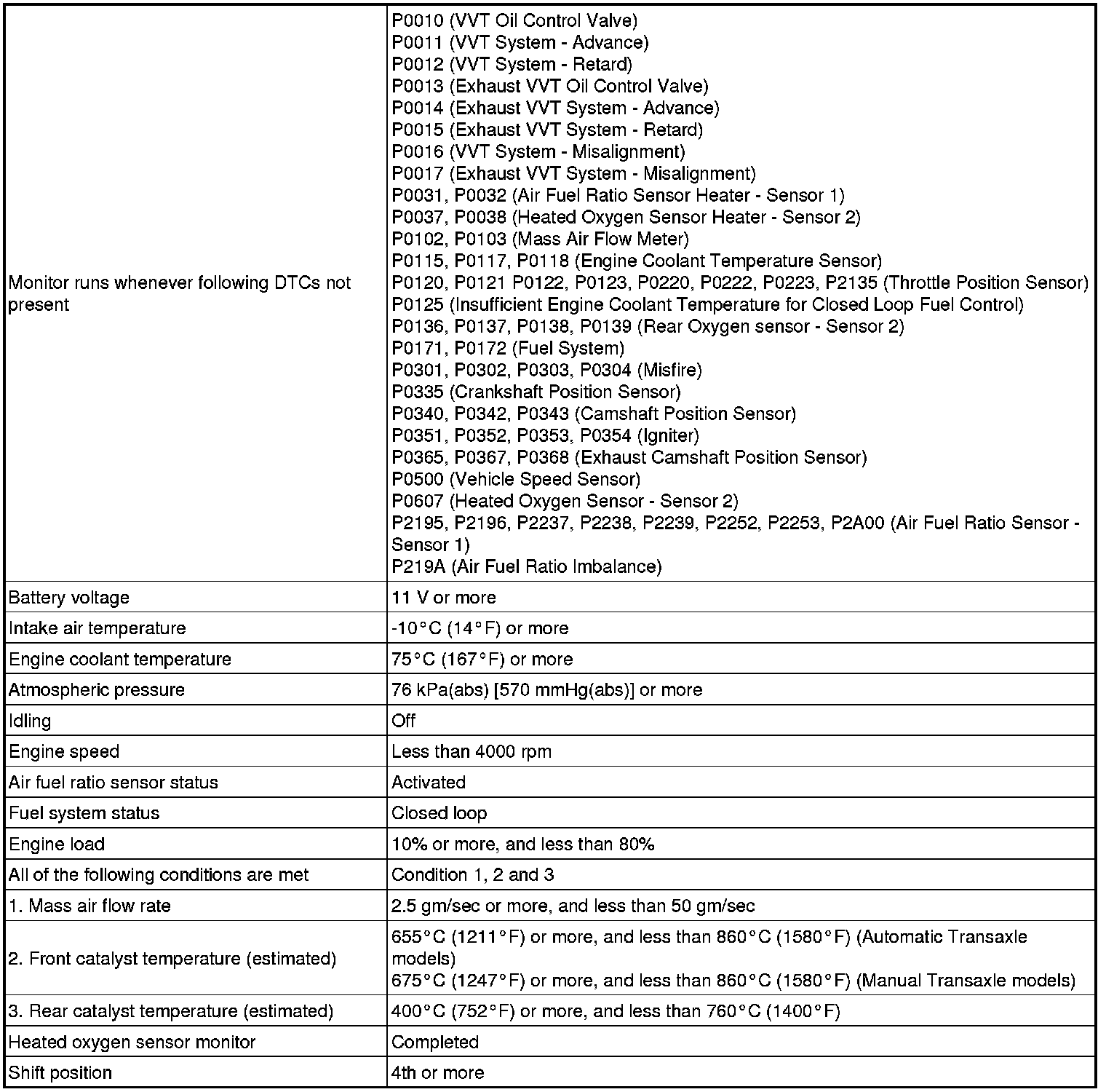 * The monitor item will change to Complete as the Catalyst Efficiency monitor operates.