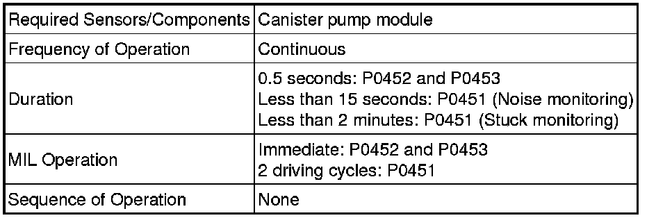 If the canister pressure sensor voltage output fluctuates rapidly for 10 seconds, the ECM stops the EVAP system monitor. The ECM interprets this as the canister pressure sensor voltage fluctuating, and stops the EVAP system monitor. The ECM then illuminates the MIL and stores the DTC.