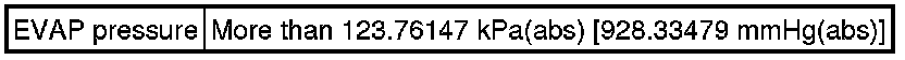 If the canister pressure sensor voltage output (pressure) is more than 4.9 V: 123.76147 kPa(abs) [928.33479 mmHg(abs)], the ECM interprets this as an open or short circuit in the canister pressure sensor or its circuit, and stops the EVAP system monitor. The ECM then illuminates the MIL and stores the DTC (1 trip detection logic).