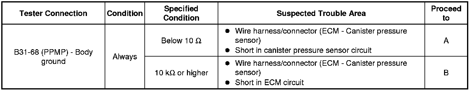 B -- CHECK HARNESS AND CONNECTOR (CANISTER PUMP MODULE - ECM)