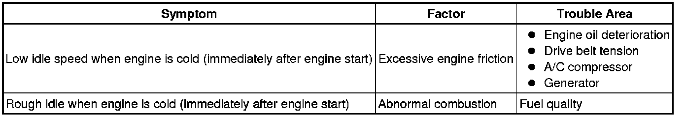 * DTC P050B may be output when the engine has the symptoms listed below. If necessary, check the trouble areas listed below.