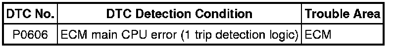 The ECM continuously monitors its main CPU. This self-check ensures that the ECM is functioning properly. If outputs from the CPU is deviate from the standard, the ECM will illuminate the MIL and set the DTC immediately.