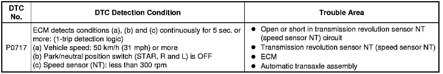 U341E AUTOMATIC TRANSMISSION / TRANSAXLE: AUTOMATIC TRANSAXLE SYSTEM: P0717; Turbine Speed Sensor Circuit No Signal; 2013 MY Corolla [07/2012 -]