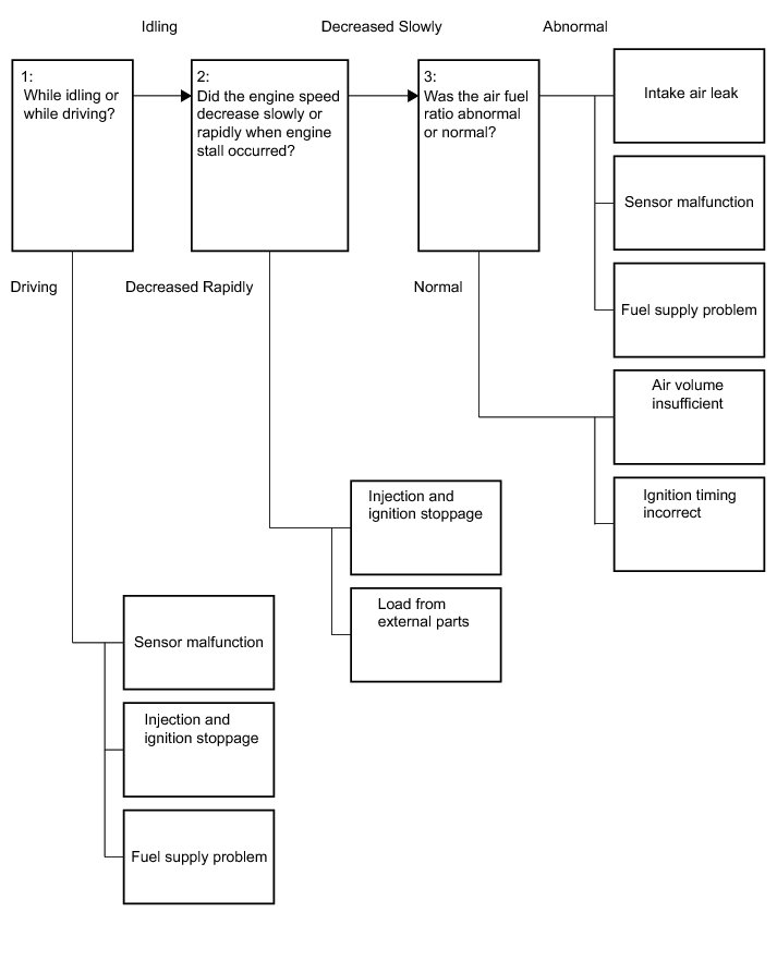 * If the engine stalled when the intake air volume was low (during idling or deceleration), there may be a decrease in torque due to an incorrect air fuel ratio, etc.