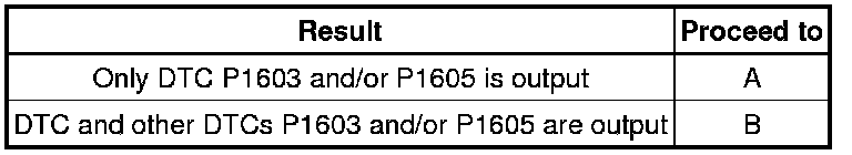 If any DTCs other than P1603 or P1605 are output, troubleshoot those DTCs first.