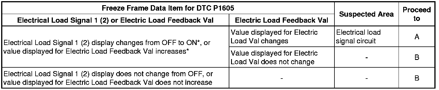 * Even if the results are normal, the electrical load signal system may have been malfunctioning. If there are no problems with other parts, inspect the electrical load system.