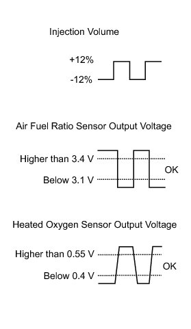 * The air fuel ratio sensor has an output delay of a few seconds and the heated oxygen sensor has a maximum output delay of approximately 20 seconds.