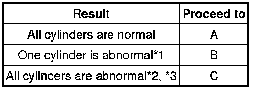 * *2: If all cylinders are abnormal, replace the spark plugs of all cylinders and check if engine starting trouble occurs again. If engine starting trouble still occurs, proceed to step 73 and perform fuel system troubleshooting A (steps 100 to 107), fuel system troubleshooting B (steps 108 to 110), intake system troubleshooting (steps 111 to 113), and ignition system troubleshooting (steps 114 to 122), in that order.