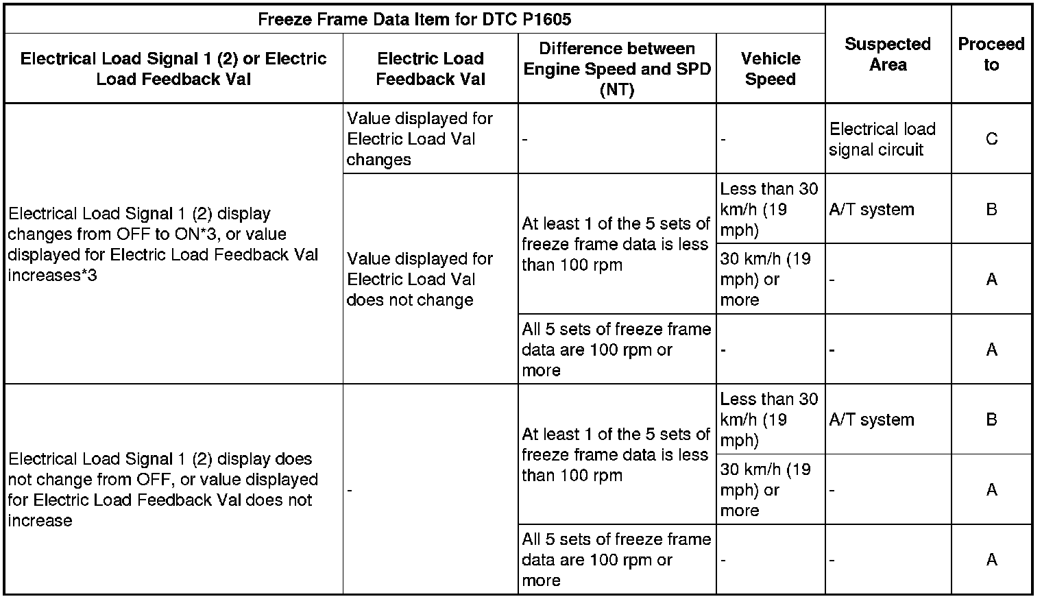 * Even if the results are normal, the electrical load signal system and/or A/T system may have been malfunctioning. If there are no problems with other parts, inspect the electrical load system and/or A/T system.
