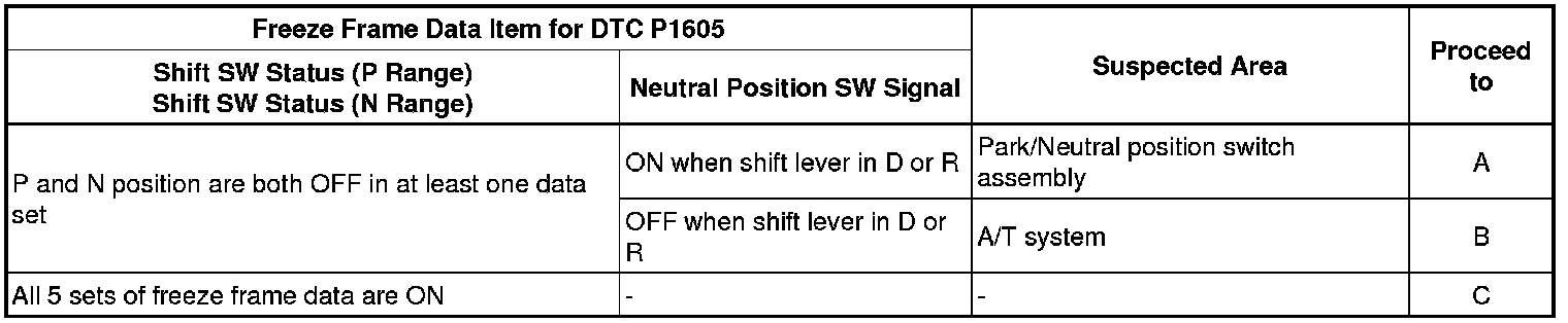 Even if the results are normal, the park/neutral position switch assembly and/or A/T system may have been malfunctioning. If there are no problems with other parts, inspect the park/neutral position switch assembly and/or A/T system.