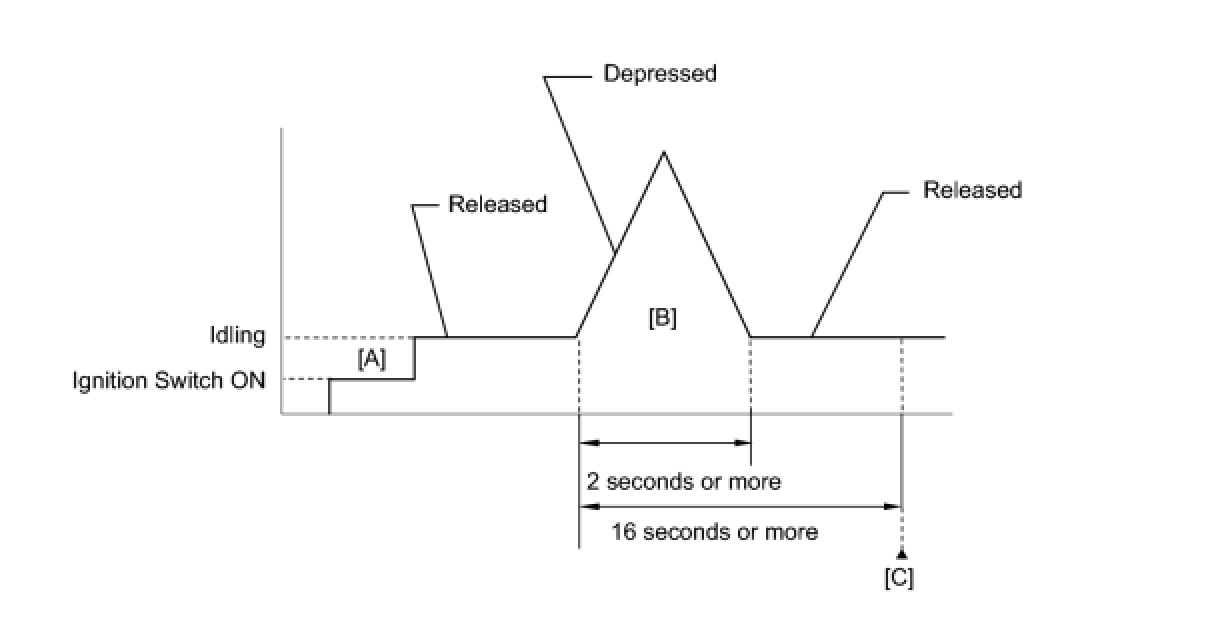 7. With the vehicle stationary, fully depress the accelerator pedal and quickly release it [B].