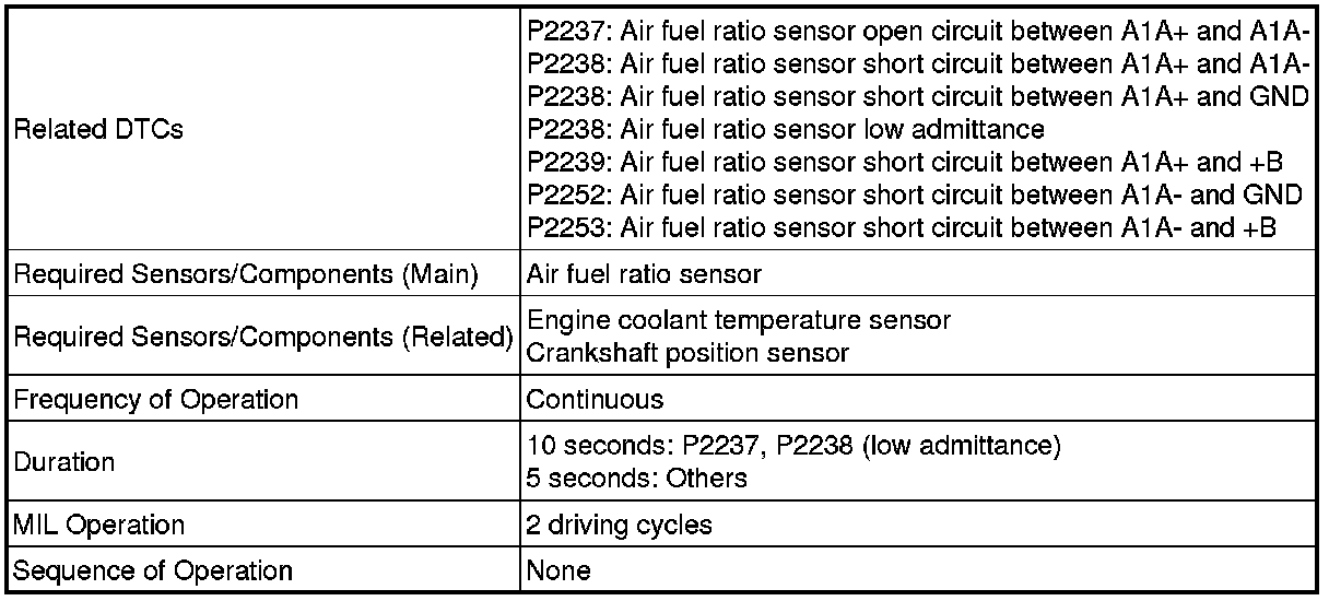 Although the DTC titles say oxygen sensor, these DTCs relate to the air fuel ratio sensor.