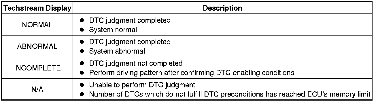 10. If the test result is INCOMPLETE or N/A and no pending DTC is output, perform a universal trip and check for permanent DTCs Reading and Clearing Diagnostic Trouble Codes.