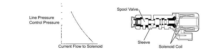 Shift solenoid valve SLT controls the transmission line pressure for smooth transmission operation based on signals from the throttle position sensor and vehicle speed sensor. The ECM adjusts the current to shift solenoid valve SLT to control the hydraulic line pressure coming from the primary regulator valve. Appropriate line pressure assures smooth shifting with varying engine outputs.