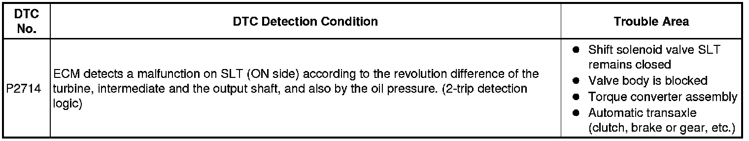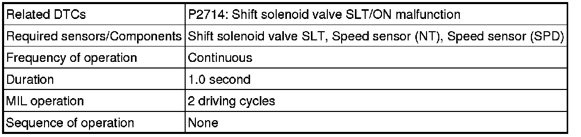 U341E AUTOMATIC TRANSMISSION / TRANSAXLE: AUTOMATIC TRANSAXLE SYSTEM: P2714; Pressure Control Solenoid "D" Performance (Shift Solenoid Valve SLT); 2013 MY Corolla [07/2012 -]