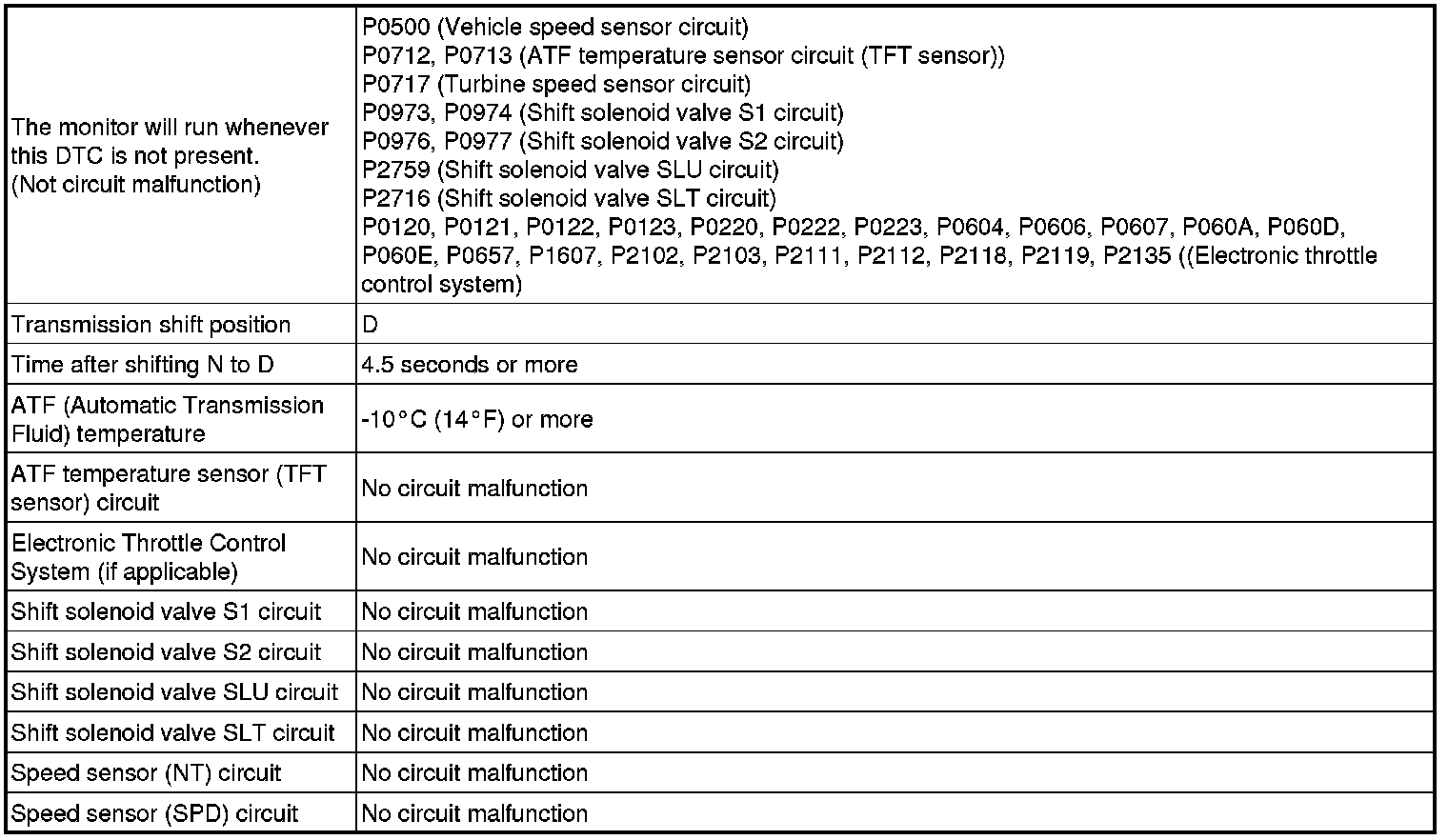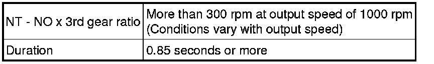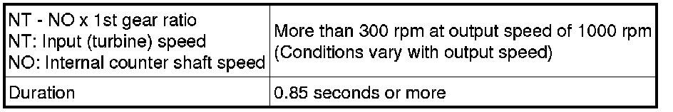 In any forward position, when the difference between the revolutions of the turbine, intermediate and output shaft exceeds the specified value (varies with intermediate, output speed) determined by the ECM, the ECM illuminates the MIL and stores the DTC.