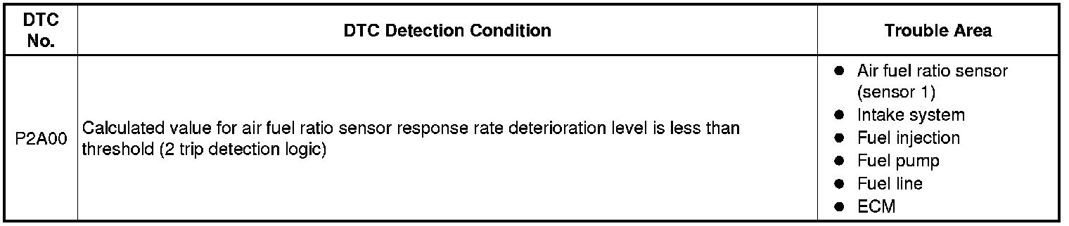 * DTC P2A00 may be also set, when the air fuel ratio is stuck rich or lean.