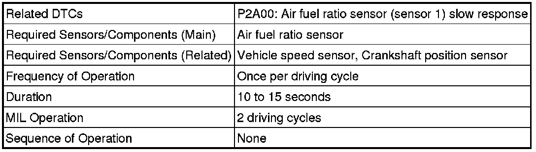 * The air fuel ratio sensor has an output delay of a few seconds and the heated oxygen sensor has a maximum output delay of approximately 20 seconds.