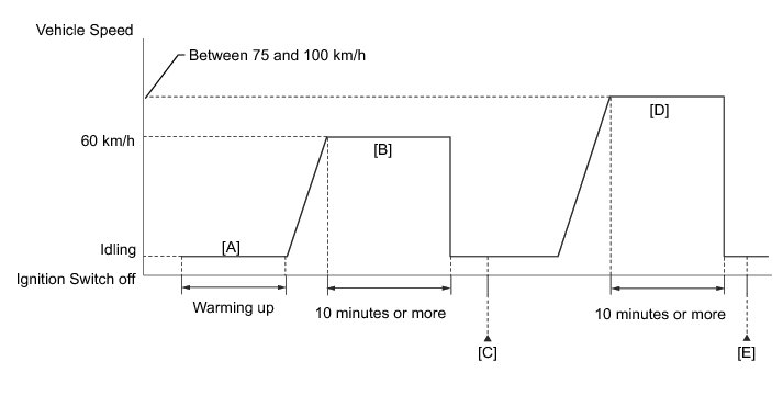 19. Drive the vehicle at a speed between 75 and 100 km/h (47 and 62 mph) for 10 minutes [D].