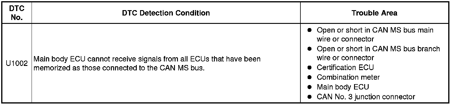 * The main body ECU will store this DTC when no signals can be received from the ECUs that have been memorized as those that are connected to the CAN MS bus.