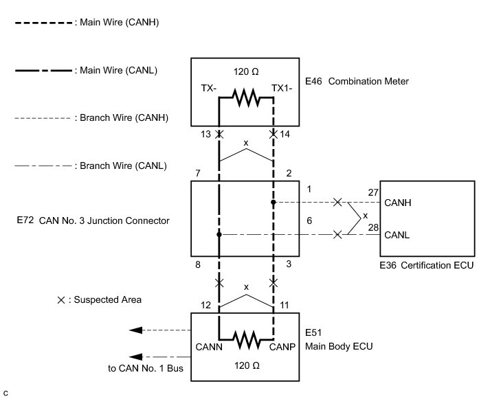 NG -- REPAIR OR REPLACE CAN MS BUS BRANCH WIRE OR CONNECTOR (CAN NO. 3 JUNCTION CONNECTOR - CERTIFICATION ECU)