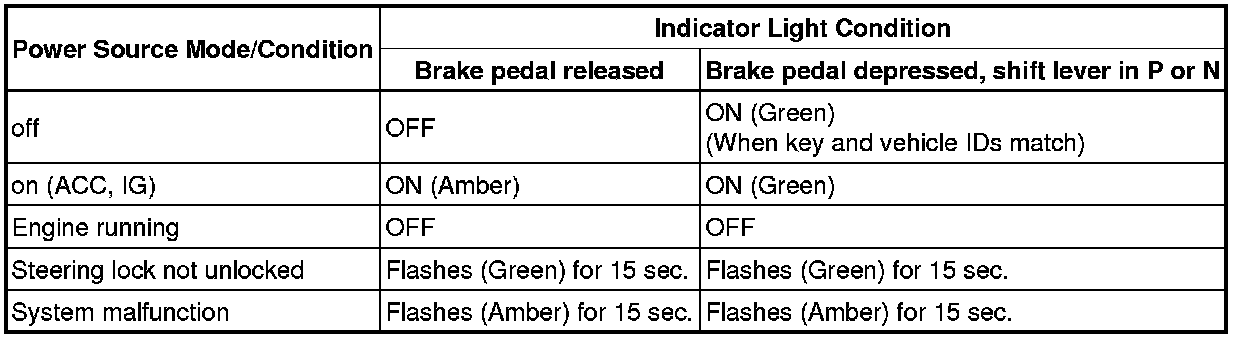 * The amber and green LEDs are for the indicator lights. The driver can check the present power source mode and whether the engine can start in accordance with the illumination state of the indicator light.