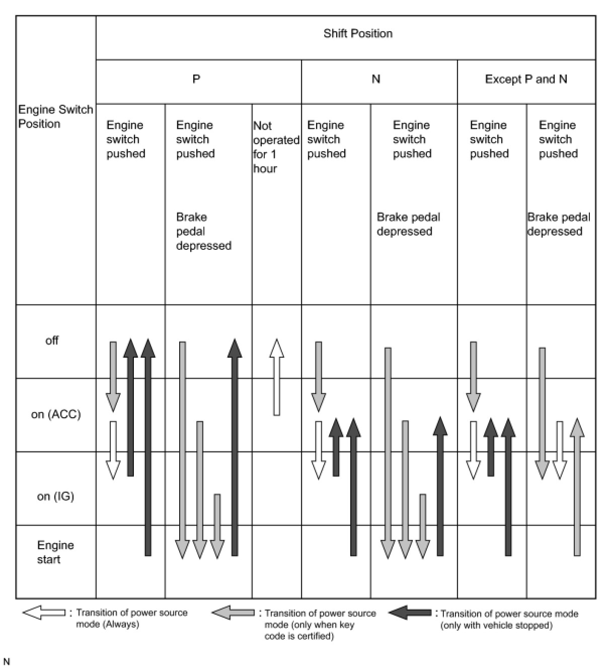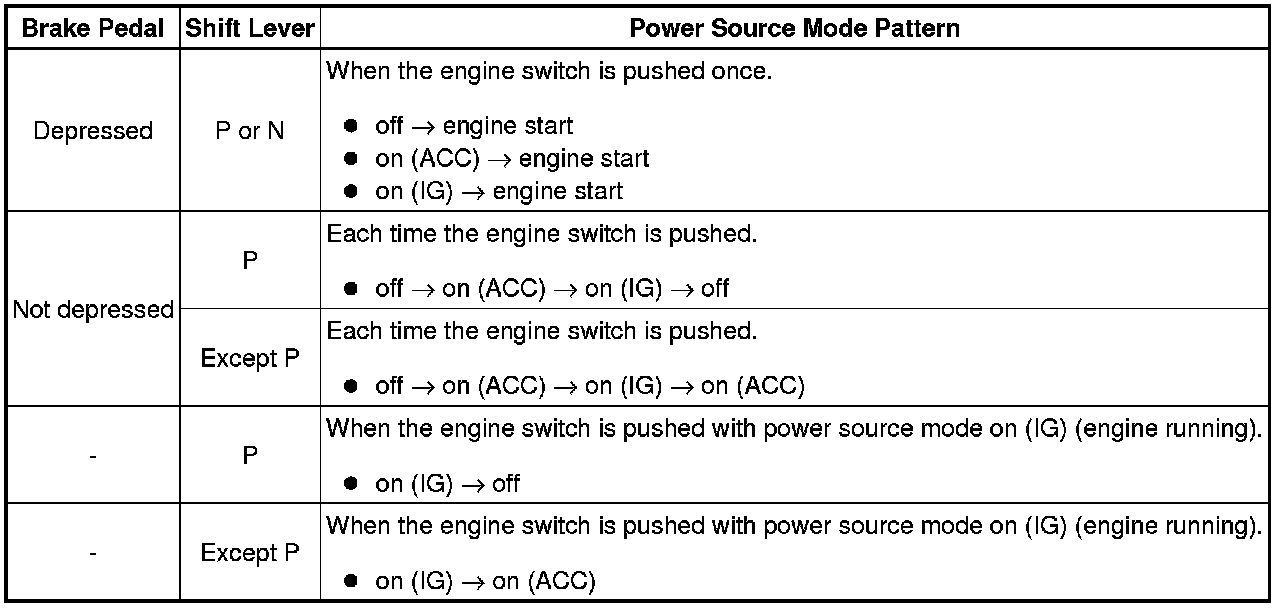 (a) This system has different power source mode patterns depending on the brake pedal condition and shift lever position.