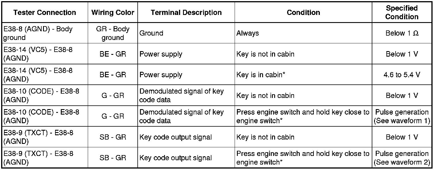 *: Remove the key battery before performing this inspection.