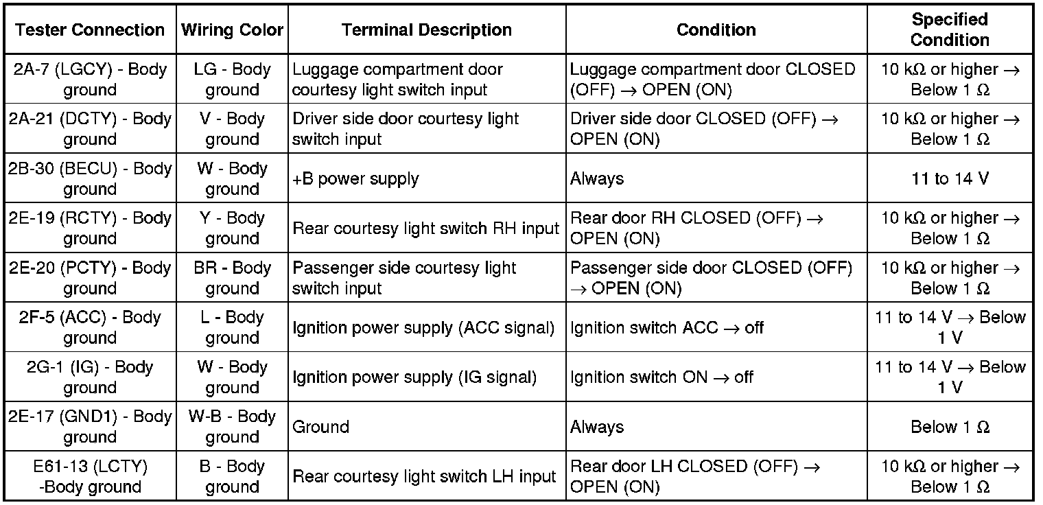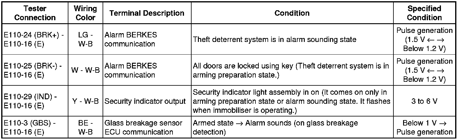 THEFT DETERRENT / KEYLESS ENTRY: THEFT DETERRENT SYSTEM: TERMINALS OF ECU; 2013 MY Corolla [07/2012 -]