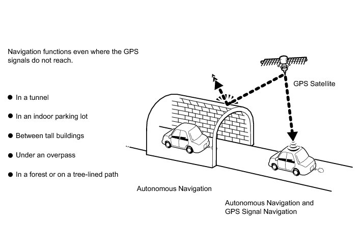 The combination of autonomous and GPS navigation makes it possible to display the vehicle position even when the vehicle is in places where GPS signals cannot be received. When only autonomous navigation is used, however, the mapping accuracy may slightly decrease.