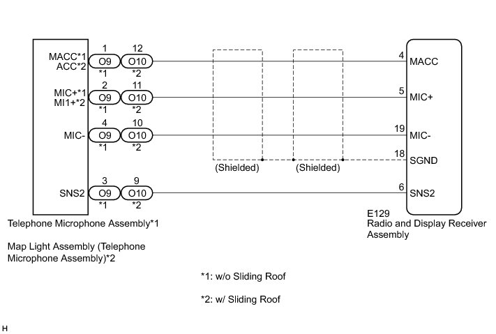 * The radio and display receiver assembly and telephone microphone assembly are connected to each other using the microphone connection detection signal lines.