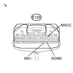 (d) Connect an oscilloscope to terminals 11 (MI1+) and 10 (MIC-) of the map light assembly (telephone microphone assembly) connector.