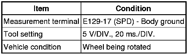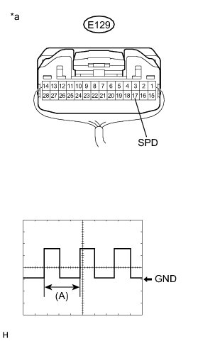 (2) Connect an oscilloscope to terminal E129-17 (SPD) and body ground.