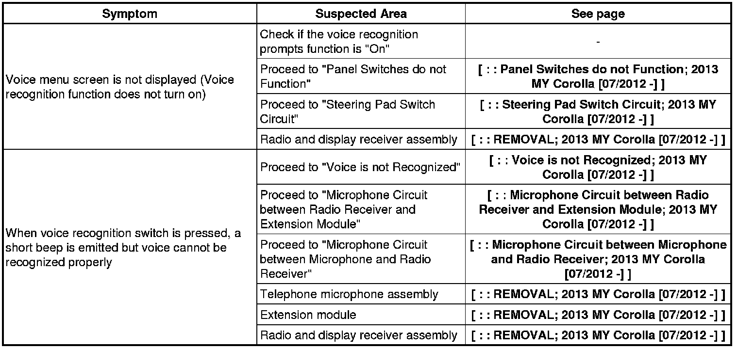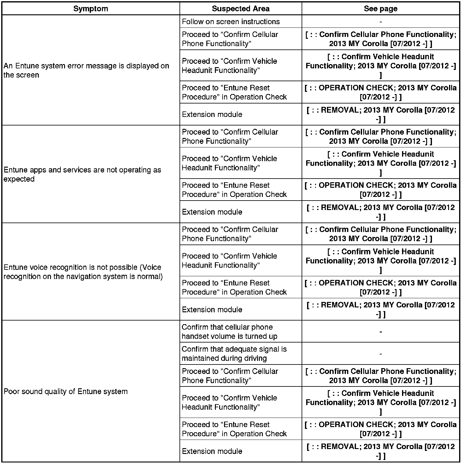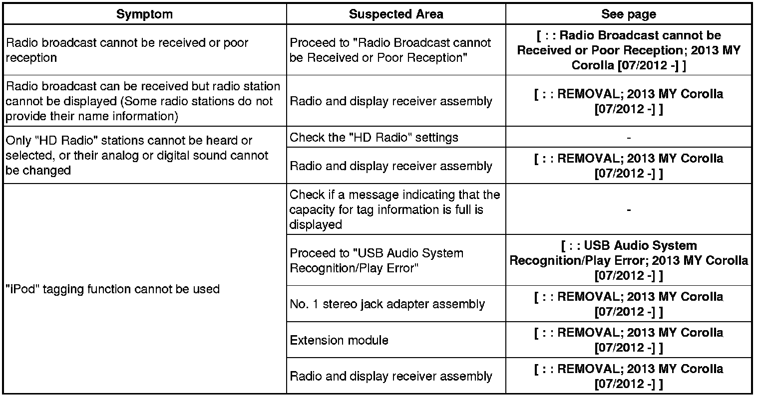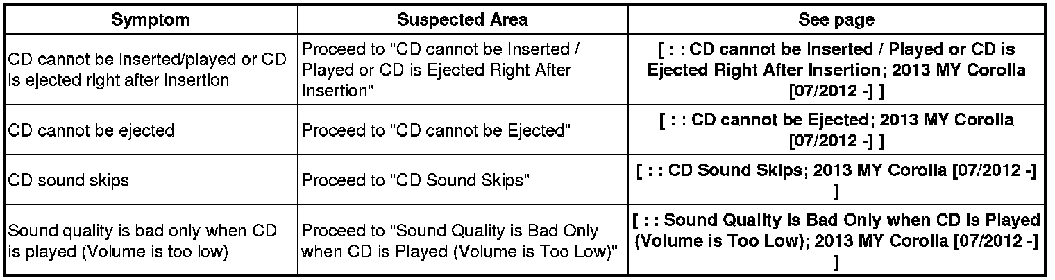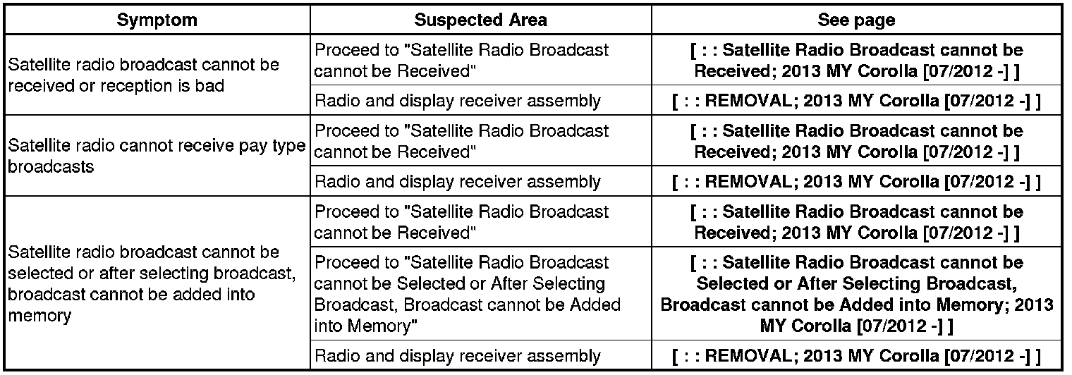 NAVIGATION / MULTI INFO DISPLAY: NAVIGATION SYSTEM: PROBLEM SYMPTOMS TABLE; 2013 MY Corolla [07/2012 -]